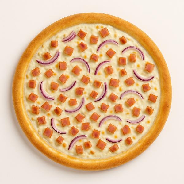 tejfölös alap, bacon, lilahagyma, mozzarella sajt és trappista sajt mix - 32 cm