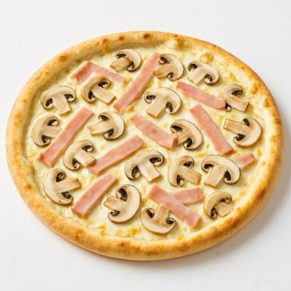 tejfölös alap, sonka, gomba, mozzarella sajt és trappista sajt mix - 32 cm