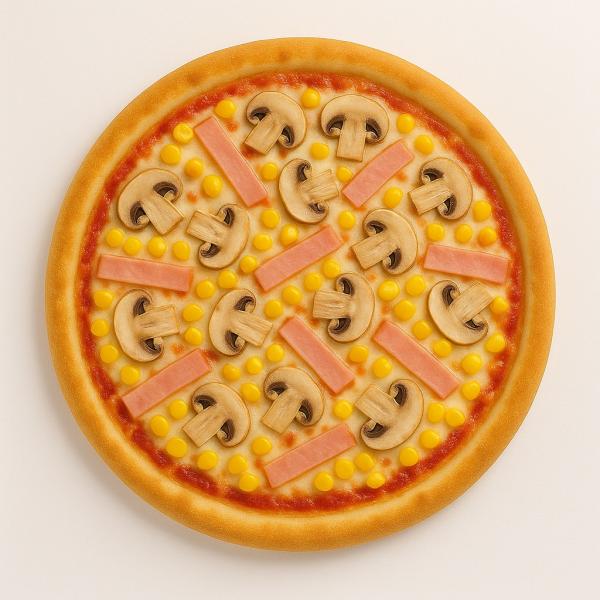 paradicsomos alap, sonka, kukorica, gomba, mozzarella sajt és trappista sajt mix - 32 cm