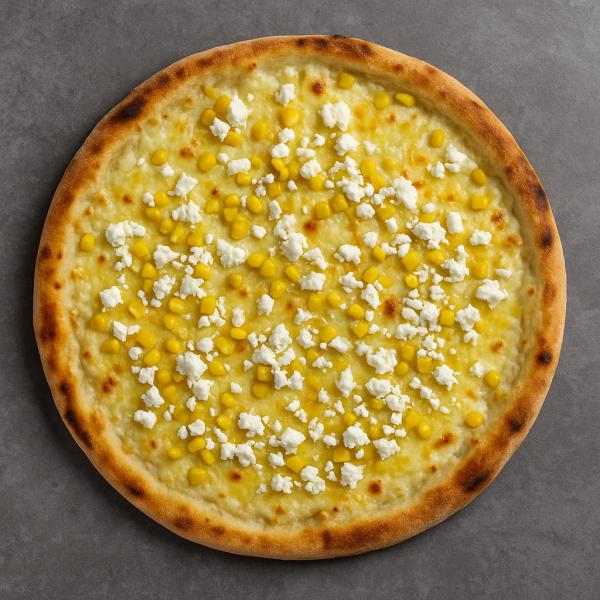tejfölös alap, kukorica, feta sajt, mozzarella sajt és trappista sajt mix - 32 cm