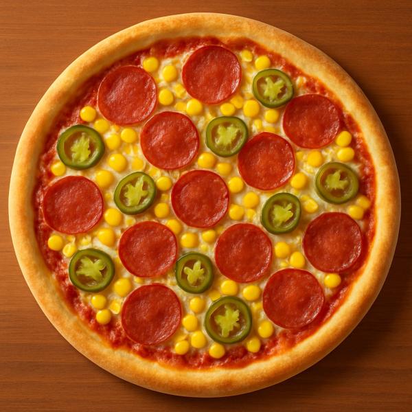 paradicsomos alap, szalámi, kukorica, jalapeno, mozzarella sajt és trappista sajt mix - 32 cm
