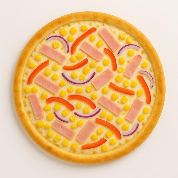 tejfölös alap, sonka, kukorica, kaliforniai paprika, lilahagyma, mozzarella sajt és trappista sajt mix - 32 cm