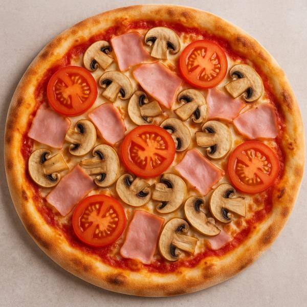 paradicsomos alap, sonka, gomba, paradicsom, mozzarella sajt és trappista sajt mix - 32 cm