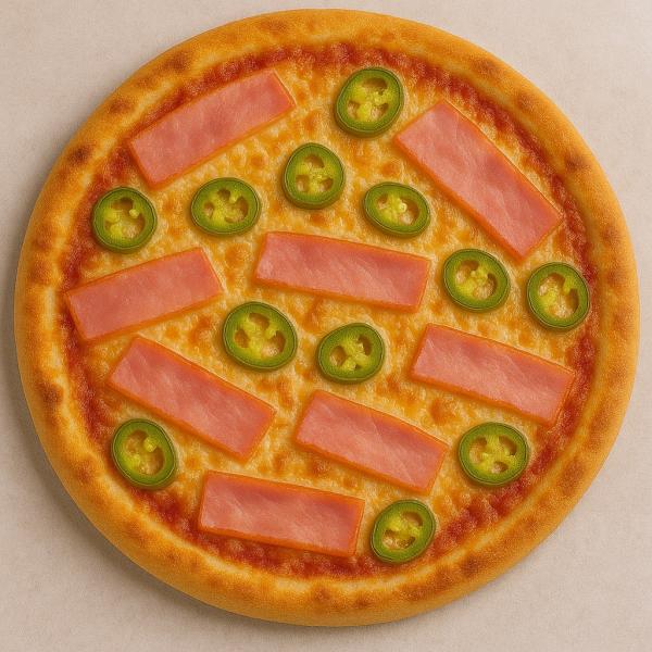 paradicsomos alap, sonka, jalapeno, mozzarella sajt és trappista sajt mix - 32 cm