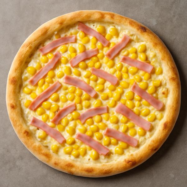 tejfölös alap, sonka, kukorica, mozzarella sajt és trappista sajt mix - 32 cm