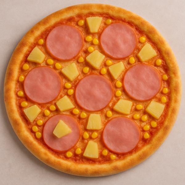 paradicsomos alap, sonka, kukorica, ananász, mozzarella sajt és trappista sajt mix - 32 cm