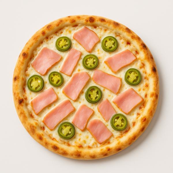paradicsomos alap, sonka, jalapeno, mozzarella sajt és trappista sajt mix