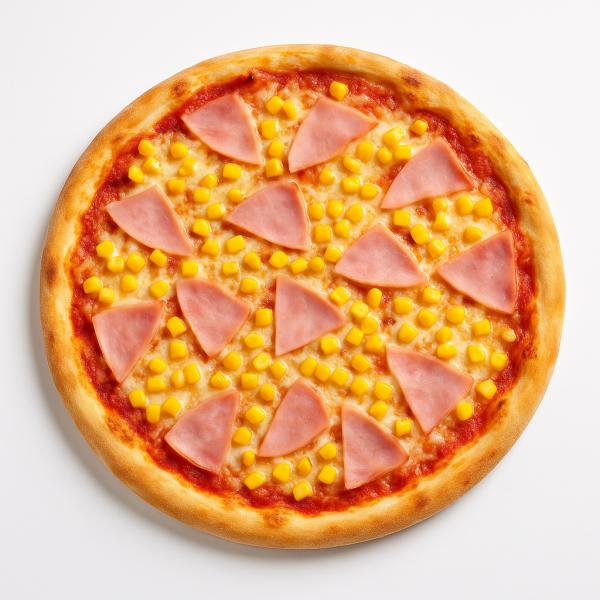 paradicsomos alap, sonka, kukorica, mozzarella sajt és trappista sajt mix - 32 cm