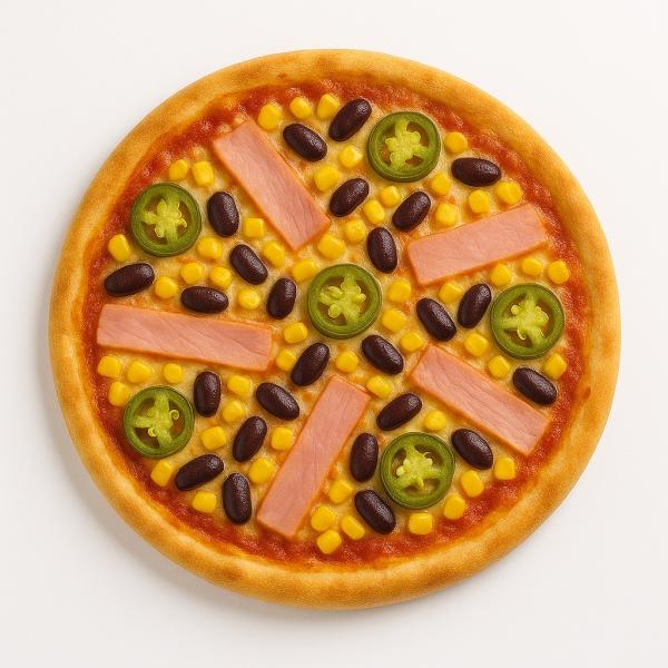 paradicsomos alap, sonka, kukorica, bab, jalapeno, mozzarella sajt és trappista sajt mix - 32 cm
