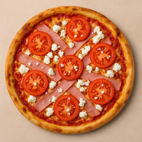 paradicsomos alap, sonka, paradicsom, mozzarella sajt és trappista sajt mix, feta sajt - 32 cm